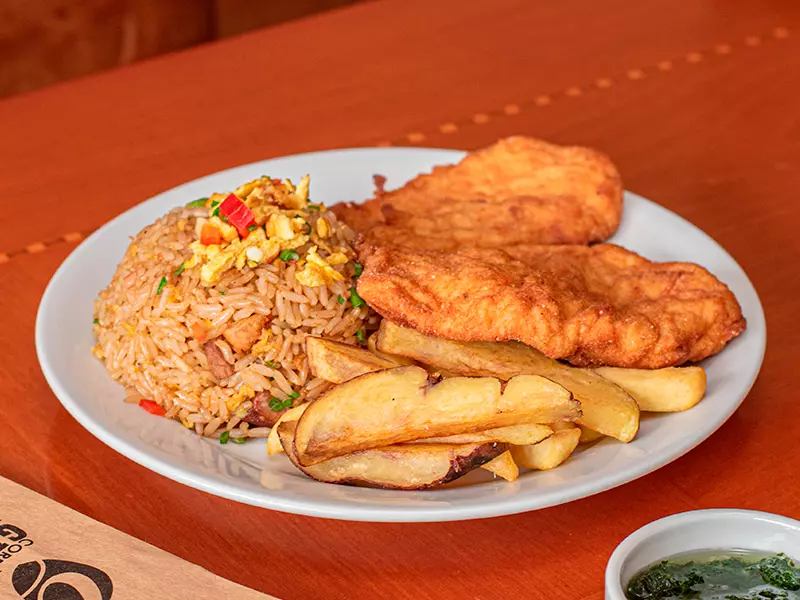 milanesa con papas +chaufa